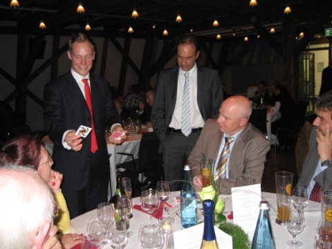 Der Abend stand ganz im Zeichen kulinarischer Köstlichkeiten, magischer Unterhaltung und fröhlichem Miteinander. Begleitet von einfühlsamer Klaviermusik durch Pianistin Bettina Klein, wurden die Gäste beim Festessen mit einem reichhaltigen Buffet und guten Weinen verwöhnt. Für Spannung und Verblüffung beim Publikum sorgte Zauberkünstler Felix Gauger. Mit Bühnenshow und Tischzauberei rundete sein Programm den gelungenen Abend ab.