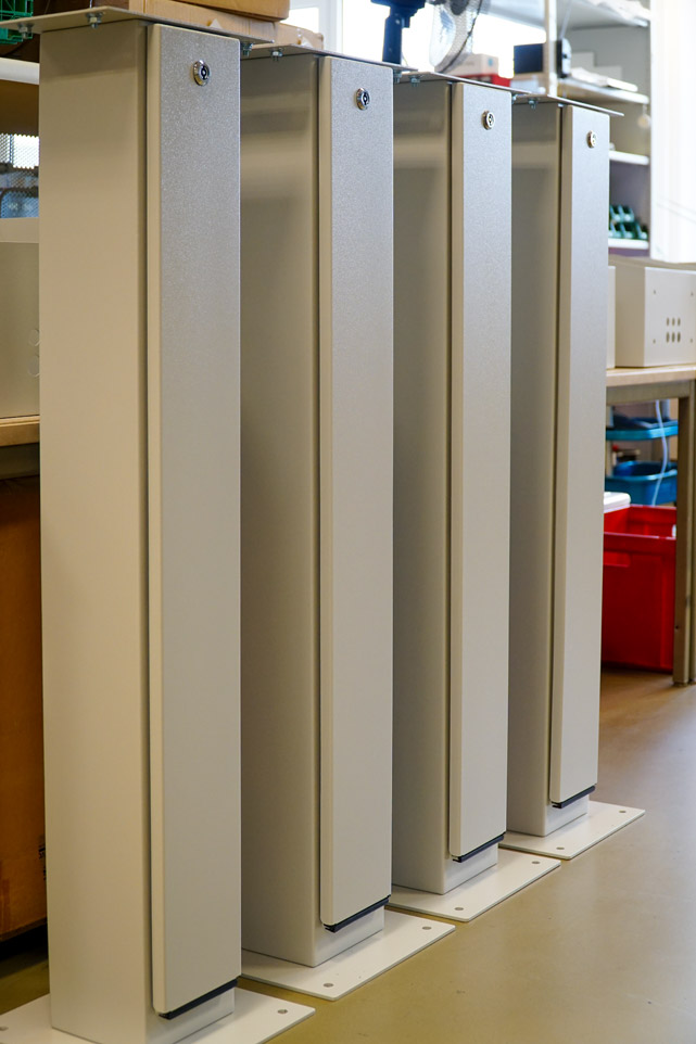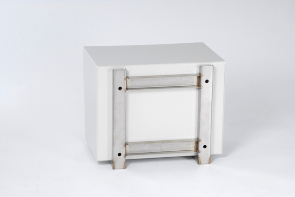 Gehäuse und Standfüße aus beschichtetem Edelstahl.